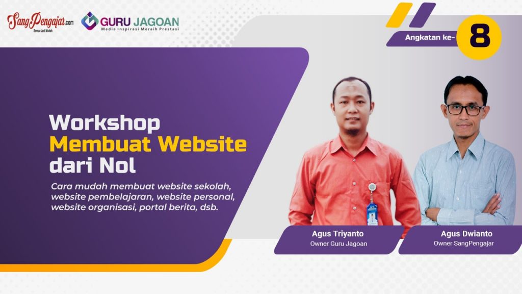 Selamat bergabung di kelas Workshop Membuat Website dari Nol Angkatan ke-8 kerja sama SangPengajar.com dengan Guru Jagoan. Berikut ini Panduan Kegiatan Workshop Website Angkatan ke-8, silakan dipedomani!